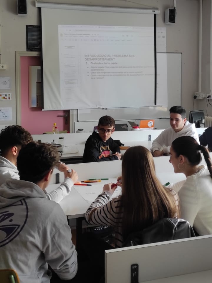 The food repurposing workshop at Balaguer Institute was designed to raise awareness and educate students on the importance of sustainability and proper food waste management. Students created cleaning products using citrus food waste and other recycled materials, in collaboration with local supermarkets like CAPRABO and PLUSFRESC, demonstrating sustainable practices within their immediate environment.